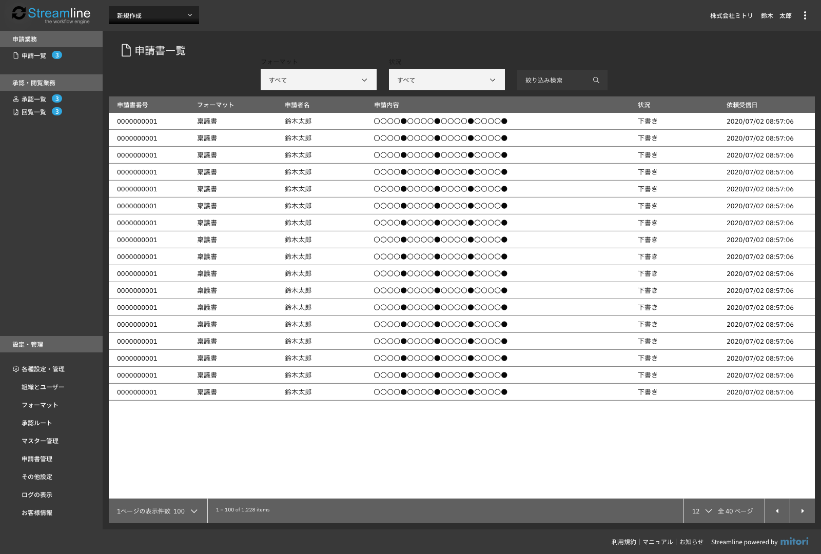 電子稟議システムのUI検討用モックアップを制作。