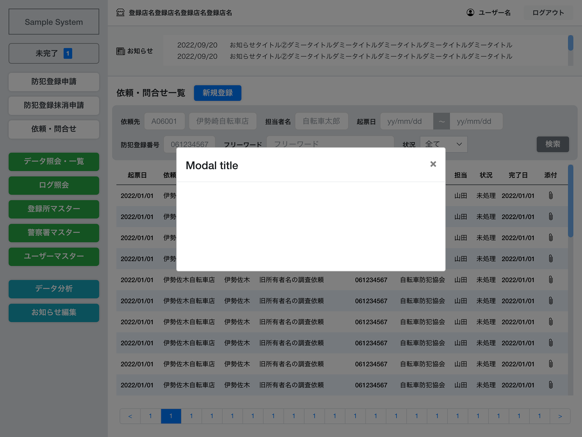自転車防犯登録システムのフロントエンドデザインを担当。iPad利用を前提に画面設計を最適化。